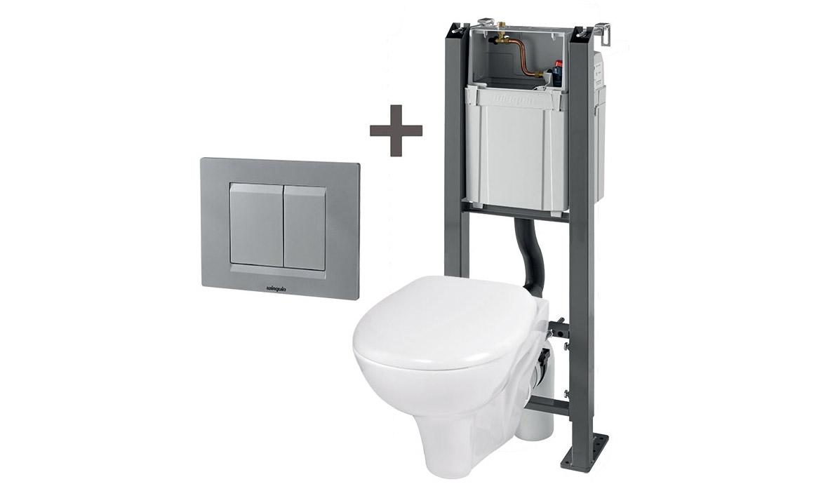 Plus tendance, le WC suspendu se veut esthétique ; en faisant ce choix, seule la cuvette et la plaque de commande qui déclenche la chasse sont visibles. Pour pouvoir l’installer, un bâti-support est nécessaire. Là aussi, retrouvez dans nos boutiques des kits de WC suspendu Geberit, Grohe ou encore Wirquin. Plus besoin d’être 2 ou 3 pour monter vos WC ; seul, vous y parviendrez en un rien de temps !